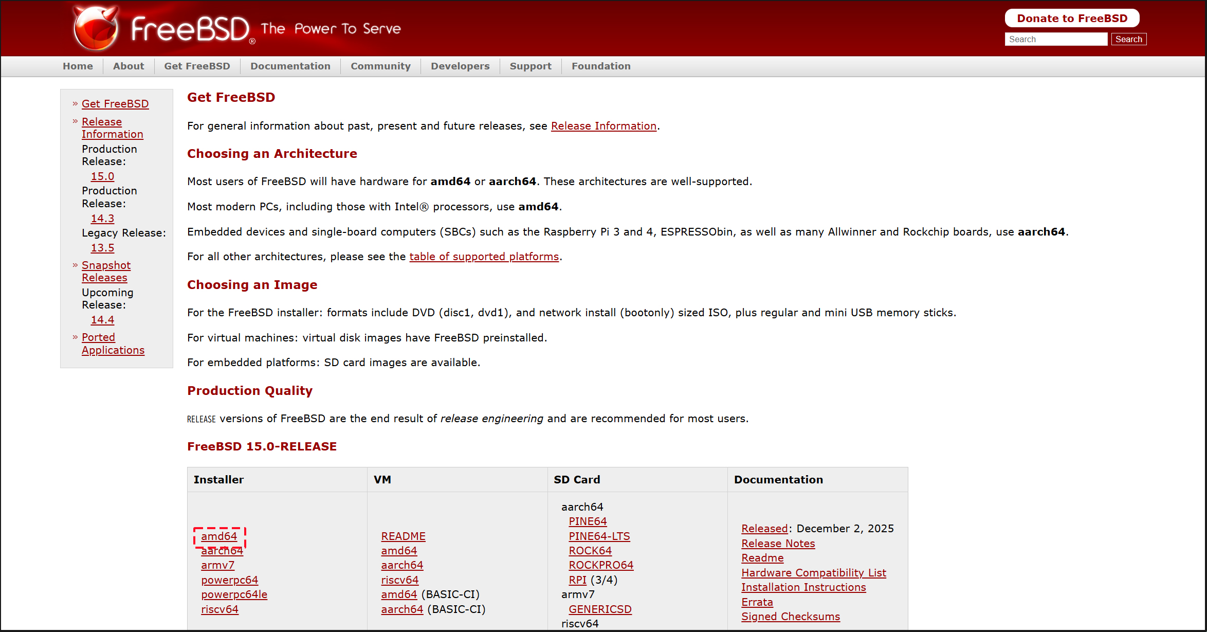 2025年12月2日、FreeBSDの最新リリース版FreeBSD 15.0-RELEASEを公開した。