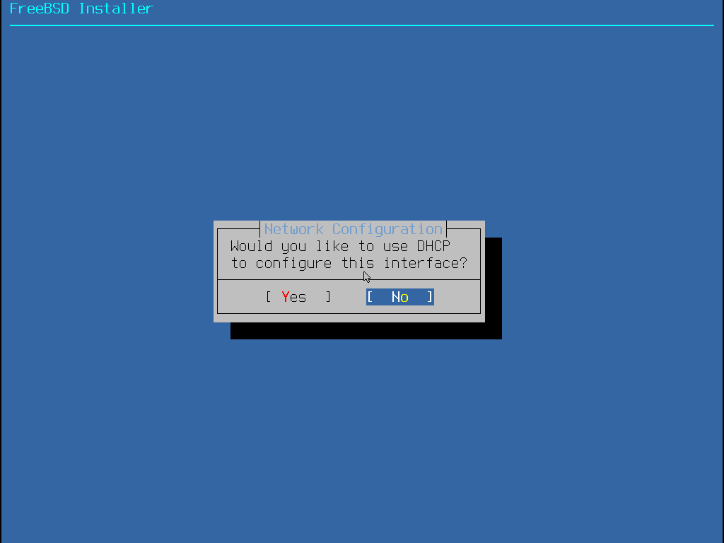 今回はサーバーを構築するため固定IPアドレスにするため、「No」を選択しEnter