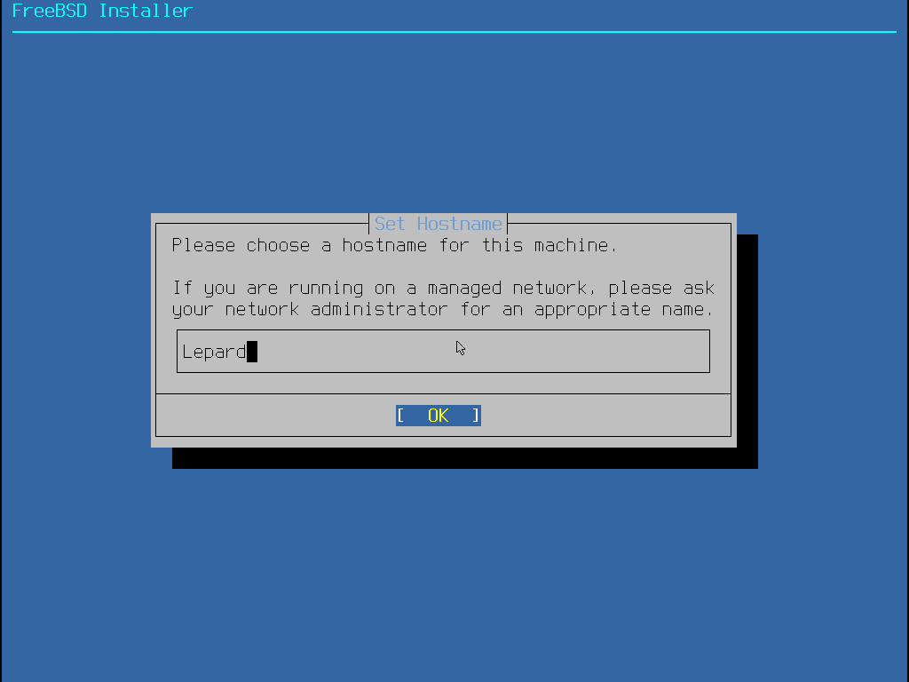8.ホスト名の設定--Set Hostnameの画面では、任意のホスト名を入力する