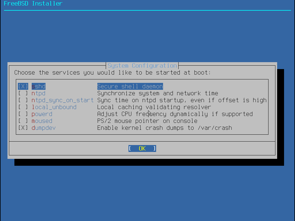 「sshd」にマークが入っていることを確認し、 「OK」を選択しEnter