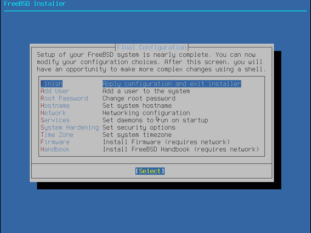 7.「Contunue ---」にカーソルを合わせ「Select」を選択しEnter