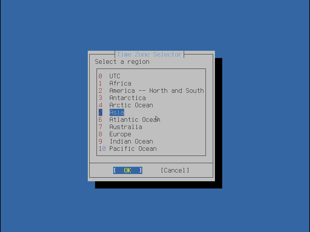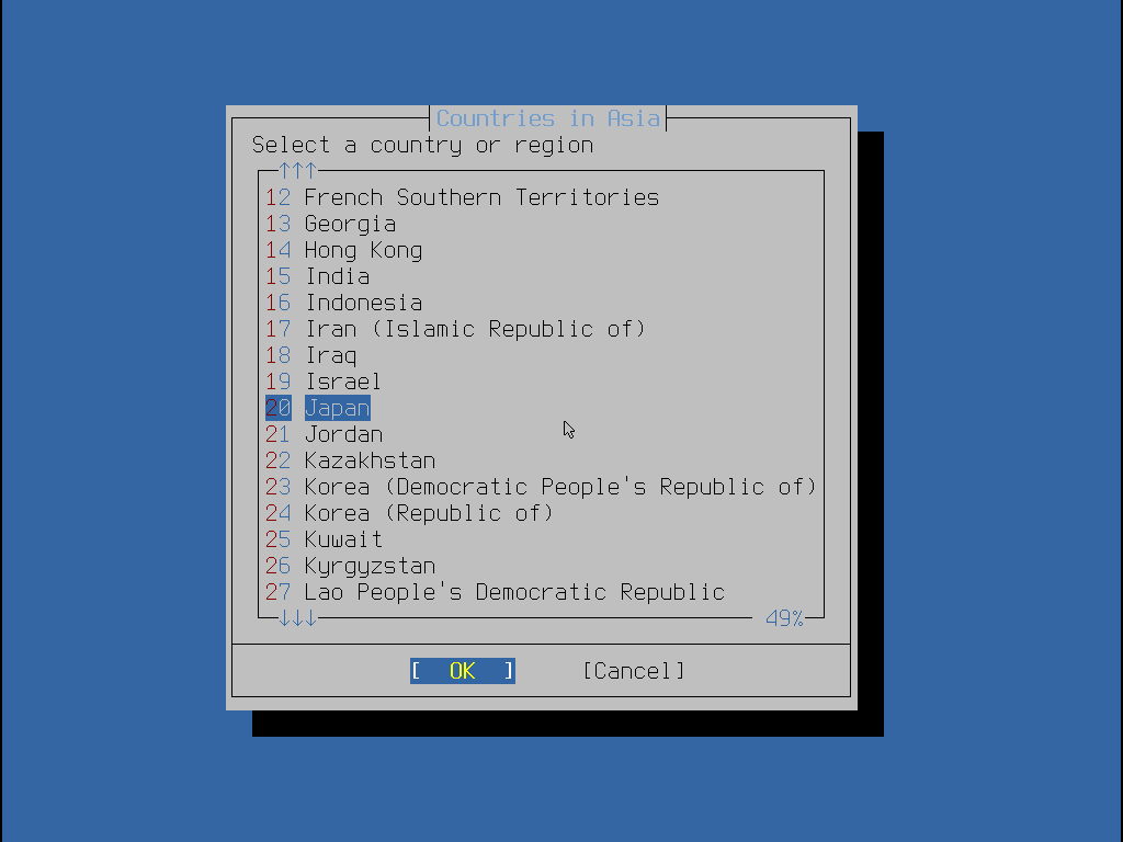 23.タイムゾーンの設定 「5 Asia」、 「20 Japan」を選択