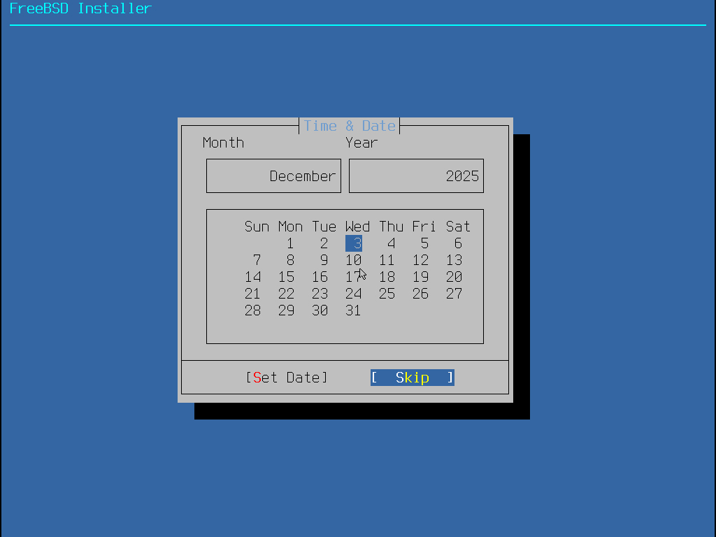 時刻があっていなくても後ほど時刻同期を行いますのでここでは「Skip」を選択しEnter