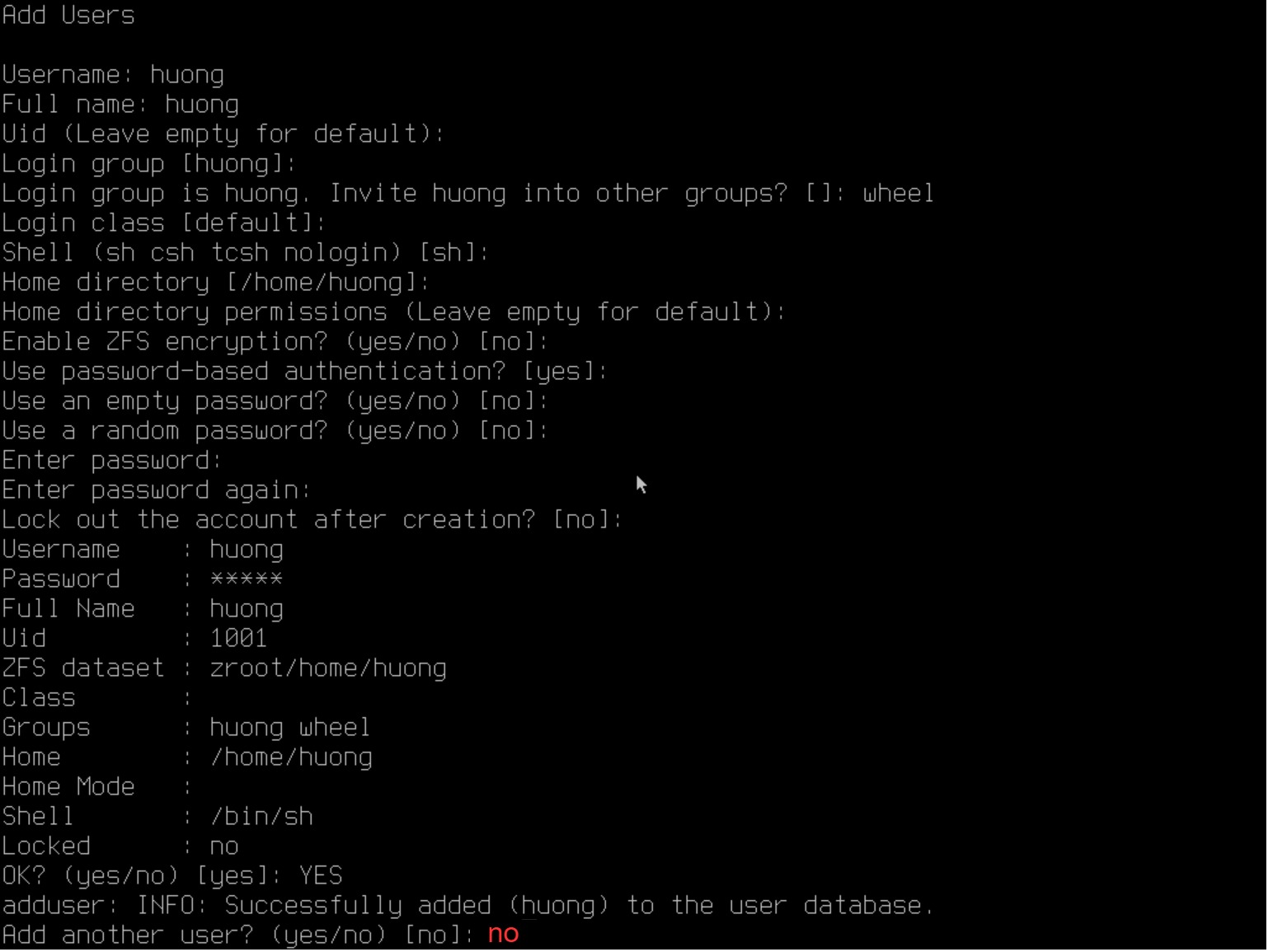 other groups : suコマンドでrootユーザーに切り替えることができるようにするため「wheel」を設定する