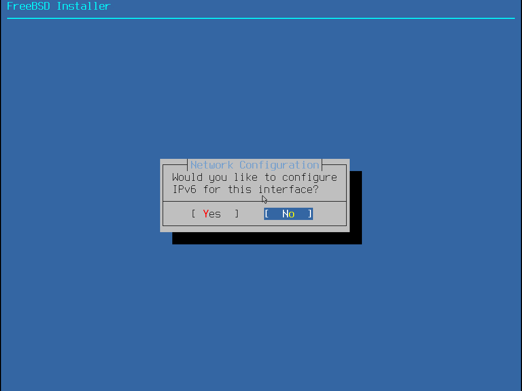 今回はIPv6を使用しないため 「No」を選択しEnter