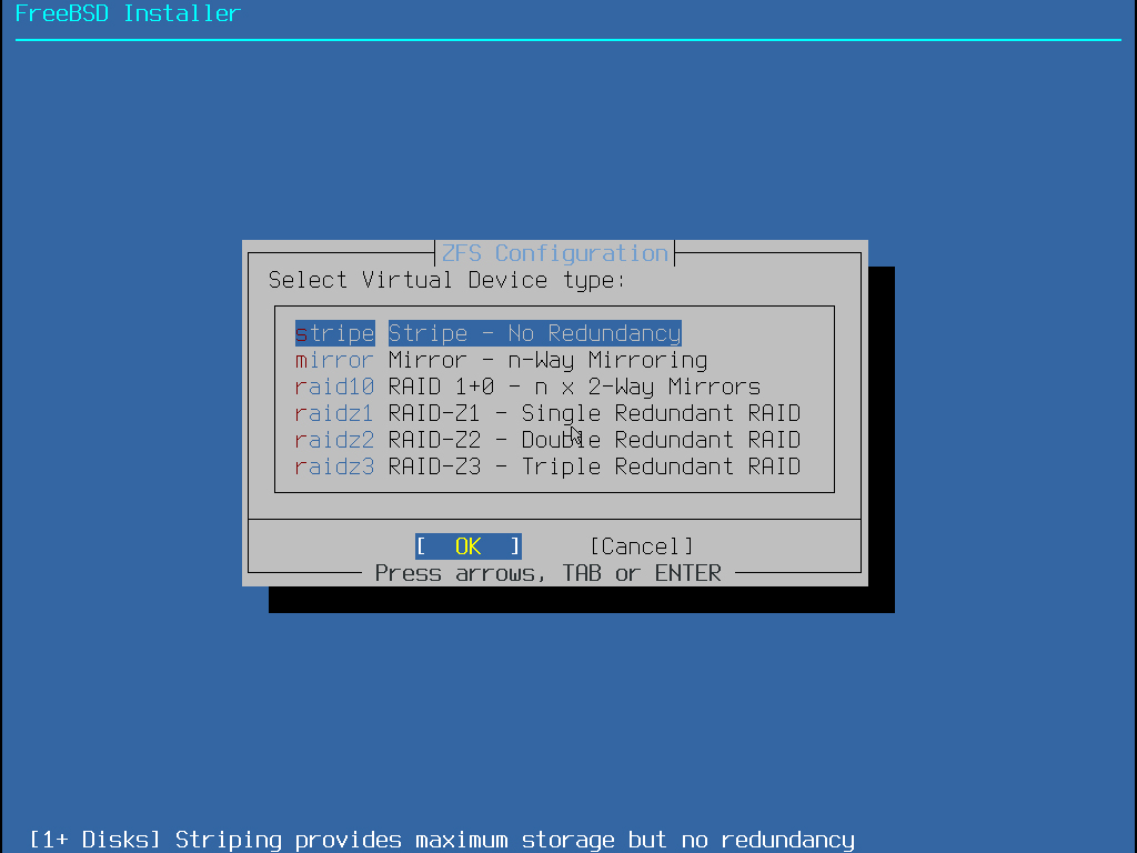 「Auto(ZFS)」に設定しOKを選択しEnter