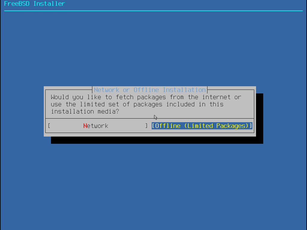 ここで、下図の通りOffline (Limited Packages)を選択すると、4.パーテーション設定に進みます
