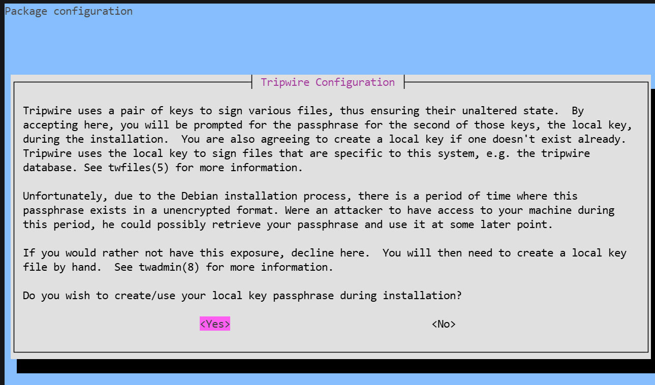 This time, Tripwire, a host-based IDS (IDS=Intrusion Detection System), will be installed as the file tampering detection system.