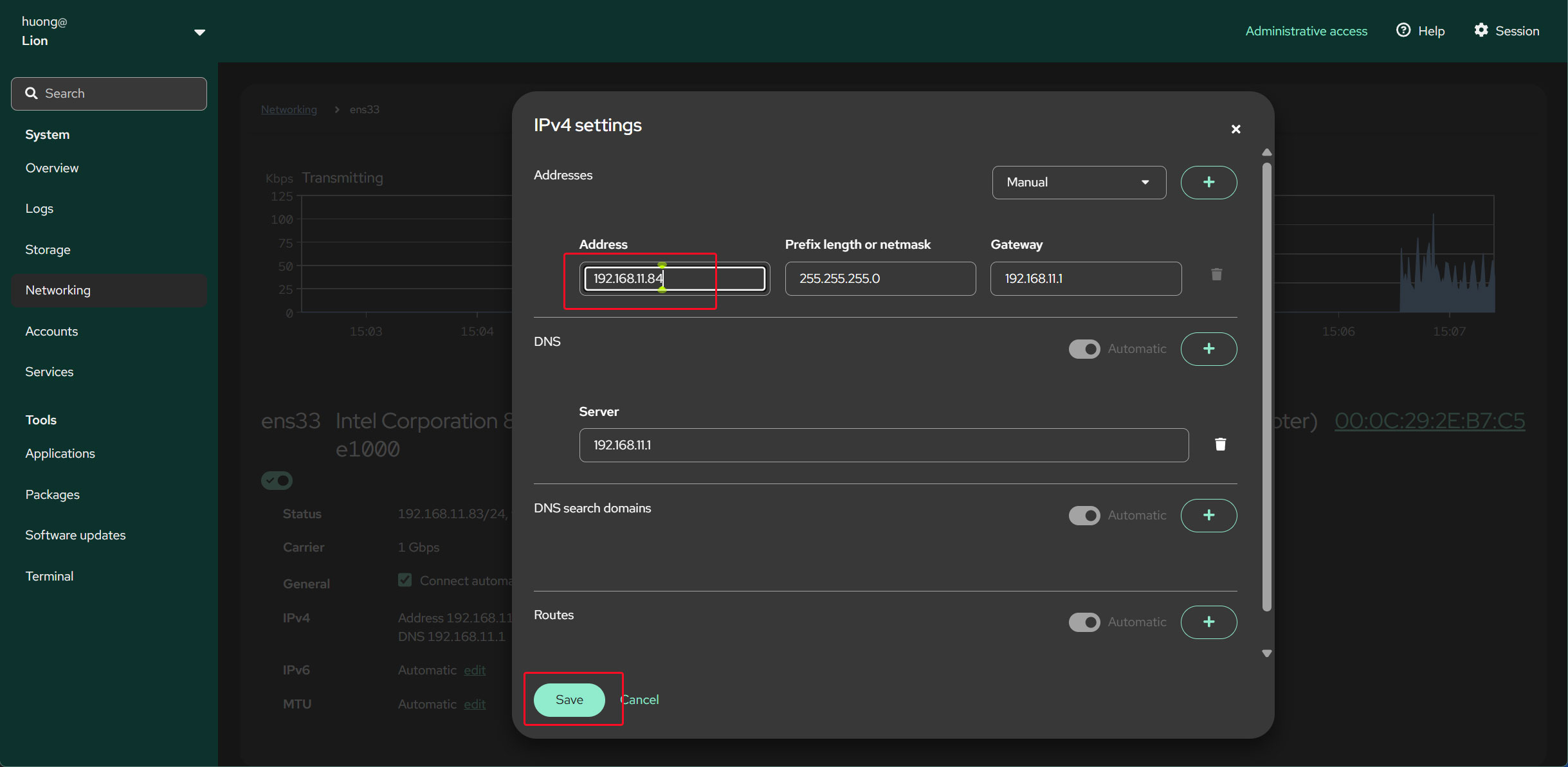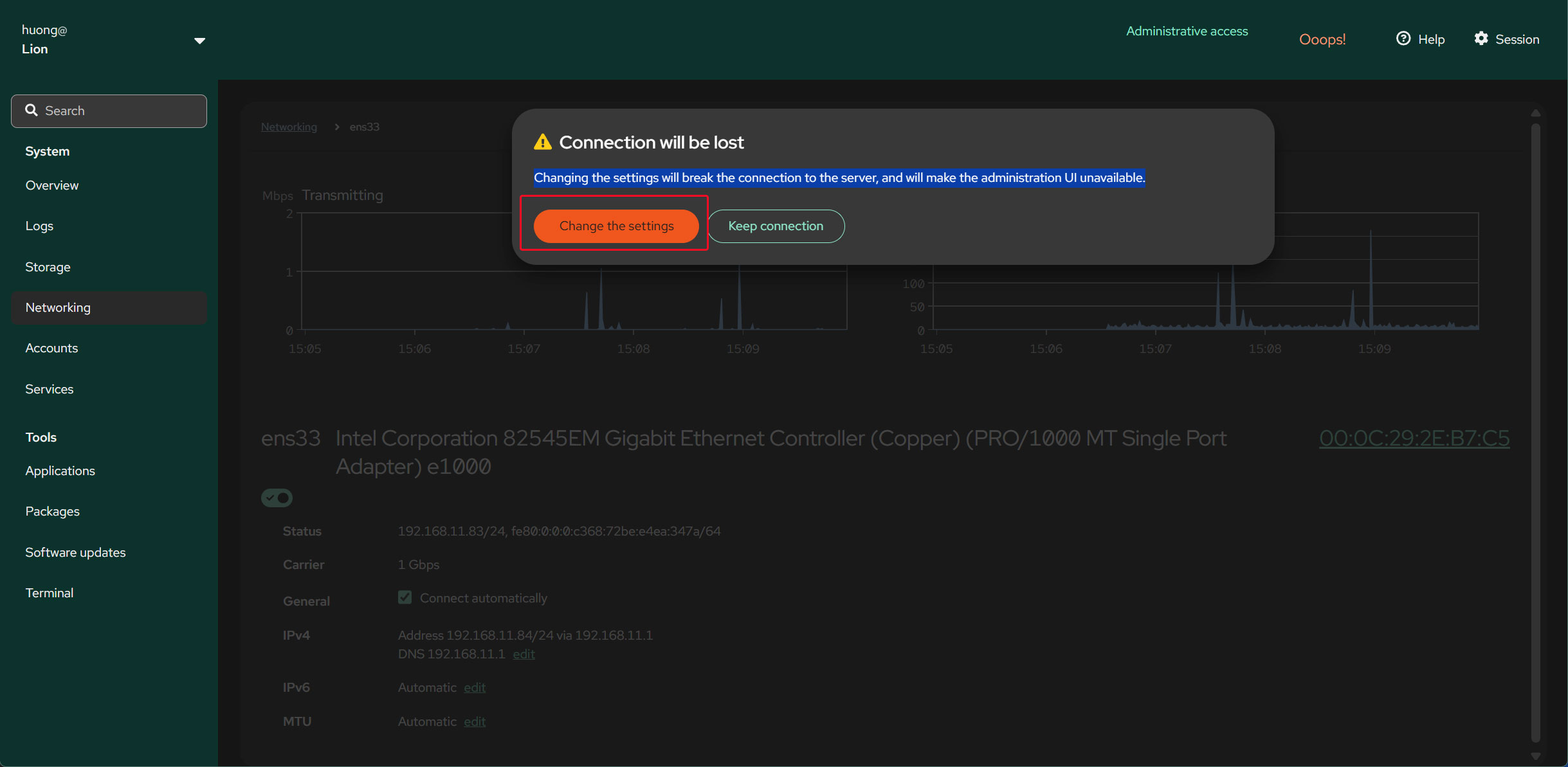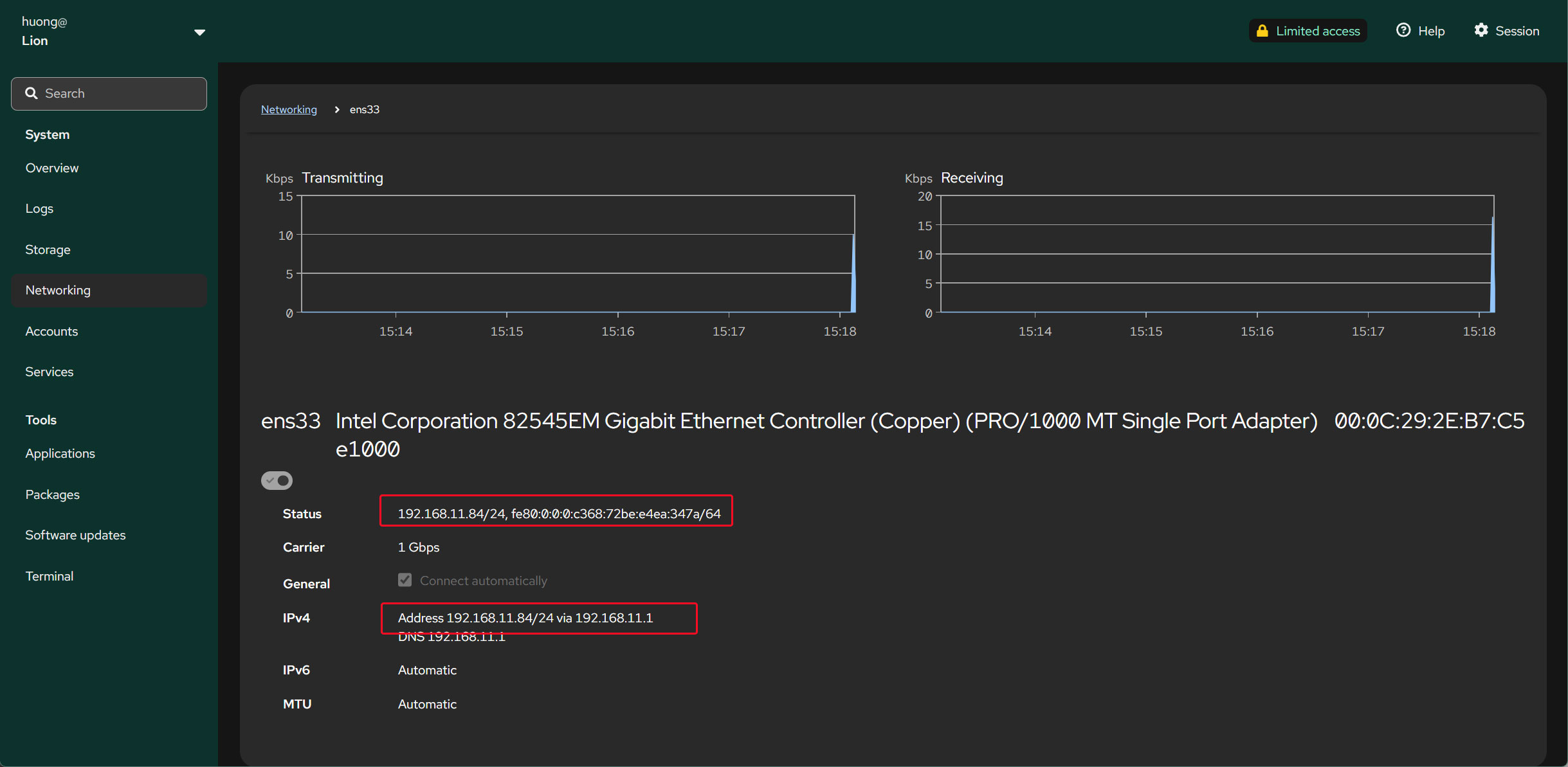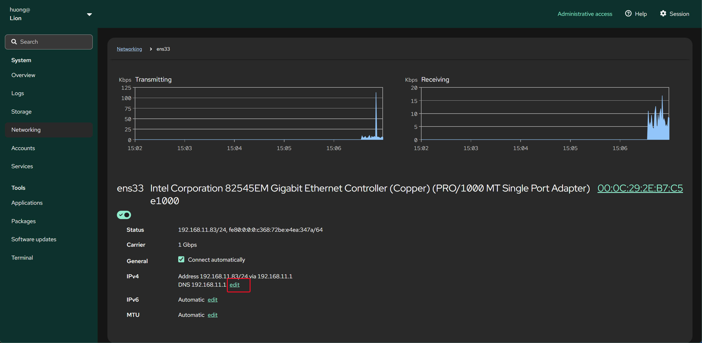 右ペイン「Networking」を開き、「Interfaces」のインターフェース名をクリックする
