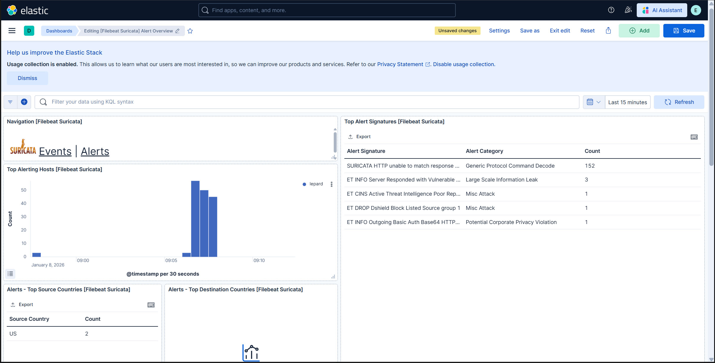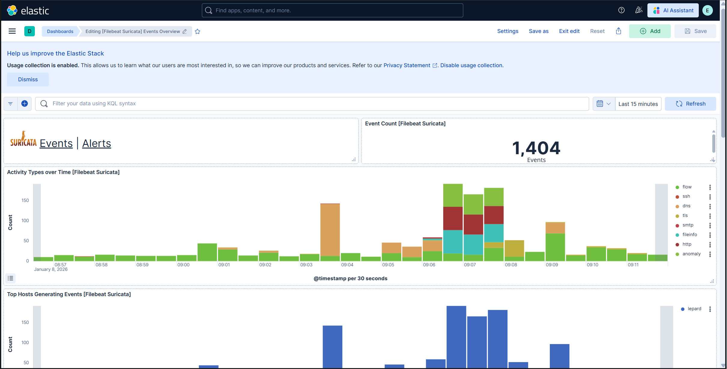 過去 15 分間のすべての Suricata イベントが表示されます