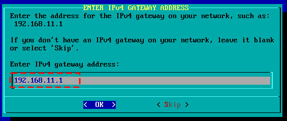 IPv4のGATEWAY アドレス設定をする(今回は192.168.11.1)