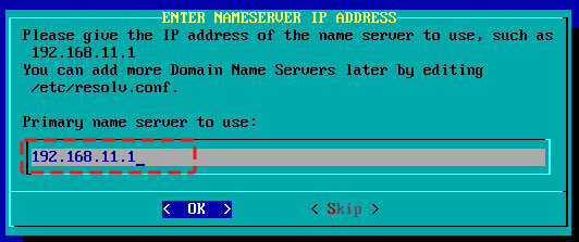 NAME SERVERのIPアドレス設定(今回は自動で192.168.11.1が設定されていた)