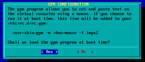 ブート時にgpmが起動するように、Yesが選択されていることを確認して、Enter