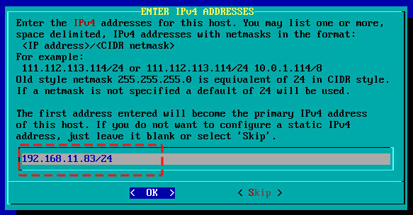 デフォルトではNetworkManagerを選択されているが、今回はサーバーとして利用するので固定IPとしてstatic IPを選択する