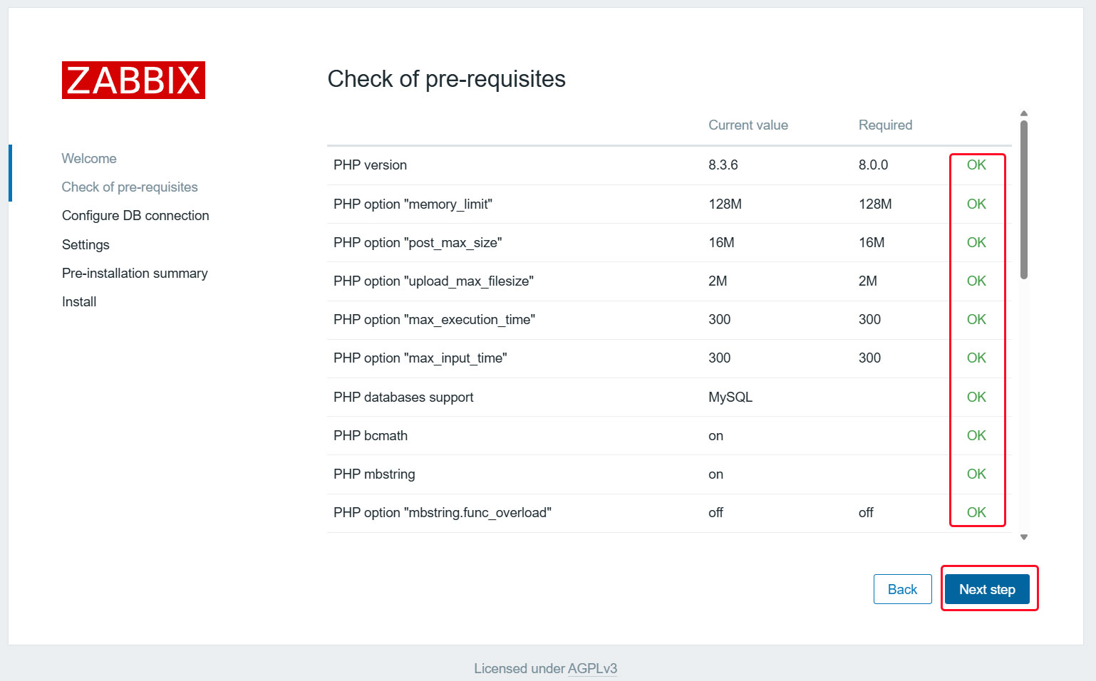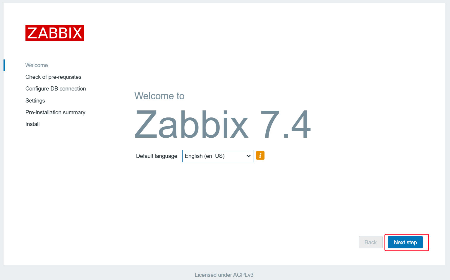 Zabbix Webインストーラは、「サーバーのIP/zabbix」または「ドメイン/zabbix」でアクセスできます。