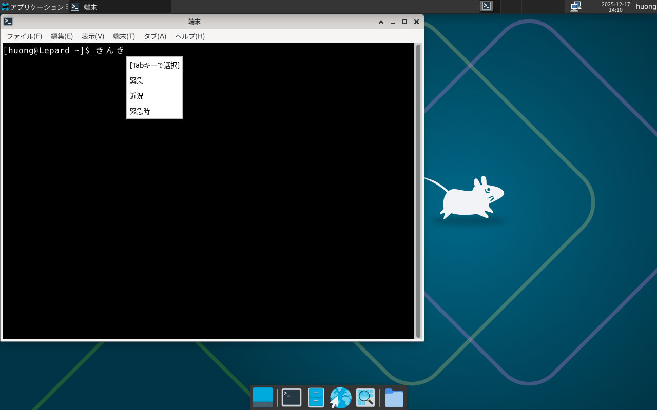 端末を起動し確認する入力の切り替えは[Ctrl+Space]もしくは[半角/全角]キーで行う